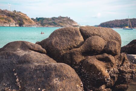 Big stone near coastline of the beach in afternoon time with soft light of the sun in summer