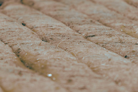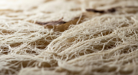 Macro view of tangled dried plant fibers creating a textured organic background Clear details and vibrant colo...