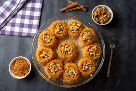 Traditional delicious Turkish food; walnut kadayif, Turkish name; bowl kadayif