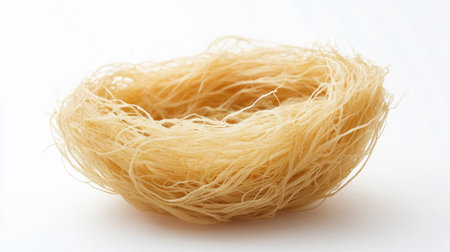 A fresh bird's nest, known for its health-enhancing properties, showcased on a white background, perfect for luxury food ingredient promotion.