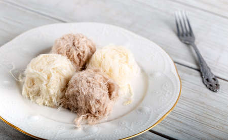 Turkish Traditional Dessert Pismaniye. Vanilla. Cotton Candy. Candy-floss. Floss halva. Pulled sugar. Hair candy.