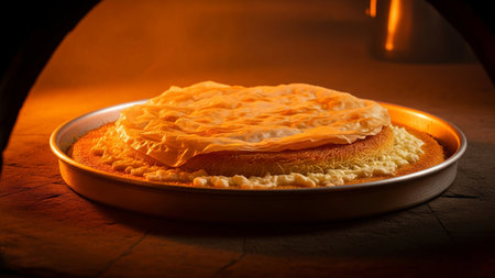 Fresh Kunafa Pastry Baking in Warm Studio Lighting with Cinnamon Finish