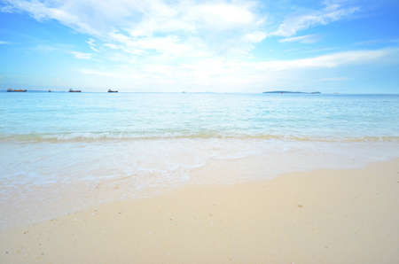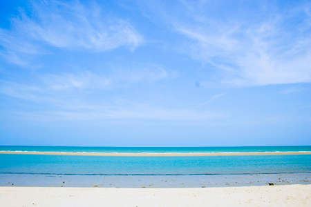 Bright clean sea sand sun beach with blue sky landscape - sea beach nature background concept