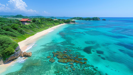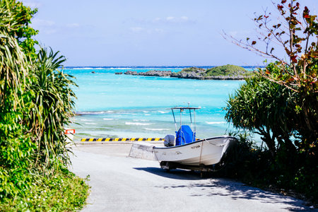 Irabu island, Japan - June 28, 2019: Toguchi beach or Toguchi-no-hama in Irabu island, Okinawa