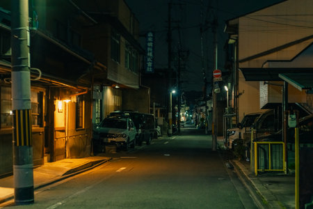 Kyoto, japan - 2 May 2025 Quiet street in Kyoto at night. High quality photo