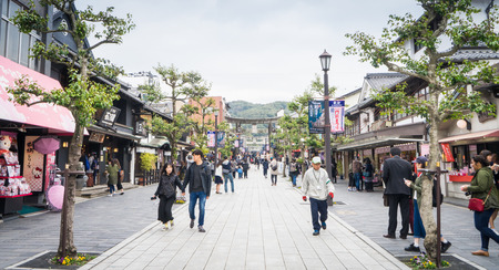 Fukuoka, Japan - March 19, 2016: Tourists are traveling in the shopping street of Dazaifu shrine.