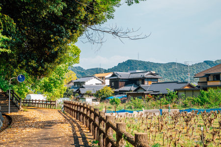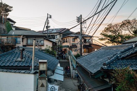 Enoshima, Japan-17 Dec 2025: Walking in the country side toward Enoshima island. The island offers a variety of attractions, including a shrine, park, observation tower and caves