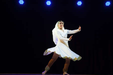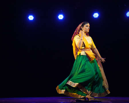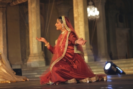 Hyderabad,Ap,India-April 23,2012-Canadian Kathak dancer and choreographer Deepti gupta performs during heritage week at chowmohalla palace built in 1869 by Nizams of Hyderabad state.