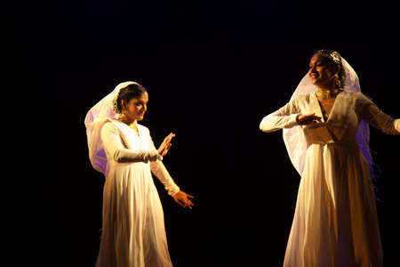 Hyderabad,Ap,India-April 24,2012-Artists of Padma Vibhushan Pandit Birju Maharaj, leading exponent of Kathak dance, group performs during Heritage Week celebrations at Chowmohalla Palace built in 1869 by Nizams of Hyderabad state.