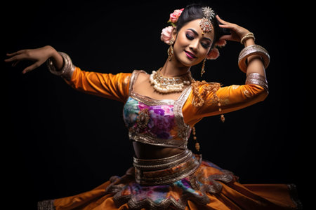Indian Kathak dancer in intricate costume evoking storytelling and rhythmic intricacies