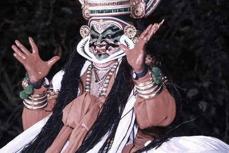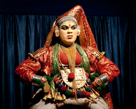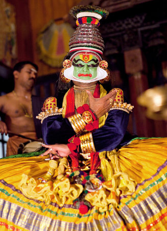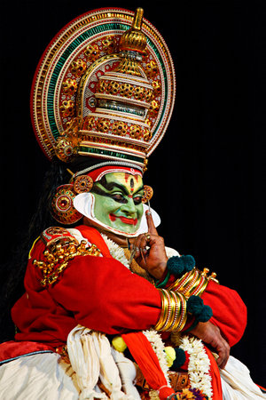 Kathakali dancer in traditional costume and makeup performing