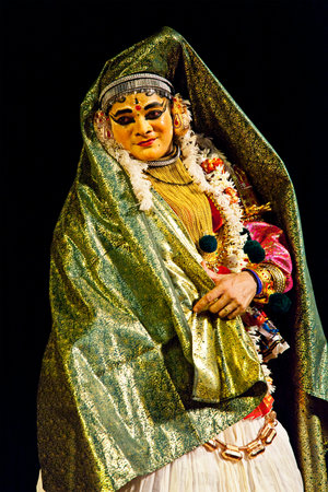 CHENNAI, INDIA - SEPTEMBER 8: Indian traditional dance drama Kathakali preformance on September 8, 2009 in Chennai, India. Performer plays Subhadra (minukku) character of Ramayana
