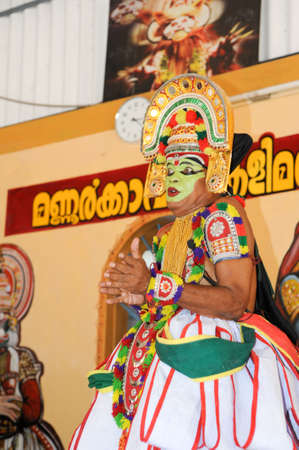 THIRUVALLA, INDIA - NOV 05,2010- Kathakali artist performing in the stage for a temple festival in Thiruvalla, Kerala, India. Kathakali is the traditional classical dance form of Kerala.