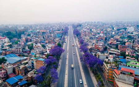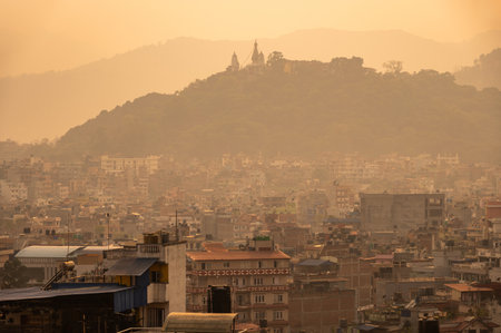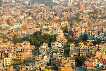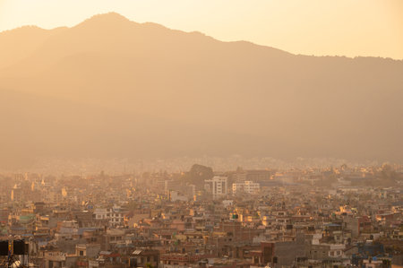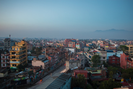 The cityscape of Kathmandu the capital city of Nepal during sunset. The city located in the bowl-shaped Kathmandu Valley of central Nepal.