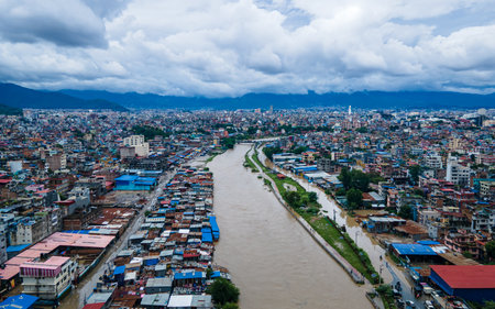 Aerial view of Bagmati river in Kathmandu, Nepal.