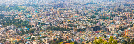 Kathmandu, Nepal- April 20,2022 : Panoramic top view of Katmandu city from Swayambhunath stupa.