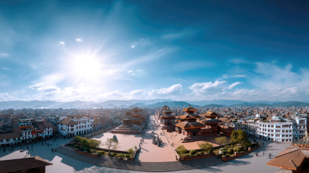 This stunning aerial view captures the grandeur of Bhaktapur Durbar Square, a UNESCO World Heritage site in Nepal, highlighting its rich cultural heritage and impressive architecture.