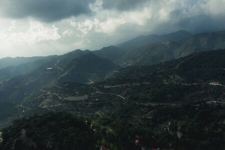 Troodos mountains in Cyprus, aerial view from drone. Beautiful nature mediterranean landscape.
