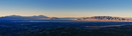 Views of Wasatch Front Rocky Mountains from the Oquirrh Mountains with fall leaves, Hiking in Yellow Fork trail and Rose Canyon in Great Salt Lake Valley. Utah, United States. USA.