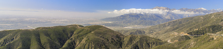 Breathtaking view of the San Bernardino Valley from the San Bernardino Mountains with Santa Ana Mountains visible in the distance, Rim of the World Scenic Byway, San Bernardino County, California