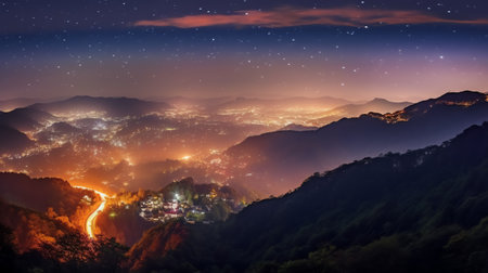 Generative AI : Majestic Milky Way parallels the mountains behind Dramatic view at Doi Pha Phueng Viewpoint Baan Pang Puai Mae Moh Lampang Province Thailand