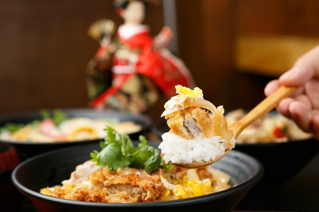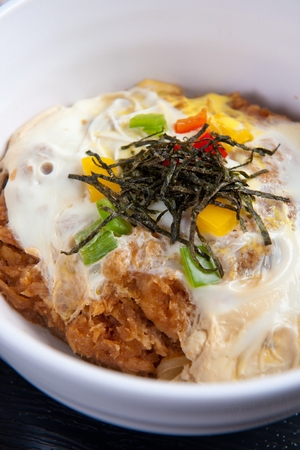 Katsudon - traditional Japanese rice bowl dish. Asian Cuisine. Donburi