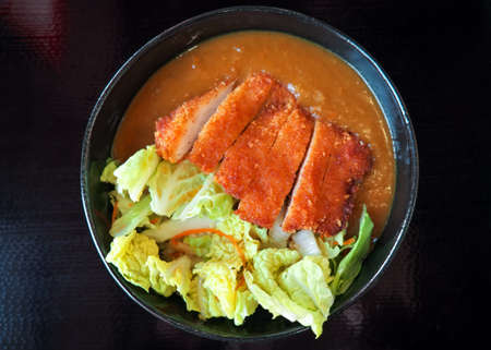 curry ramen noodles with tonkatsu fried pork cutlet - Japanese food style