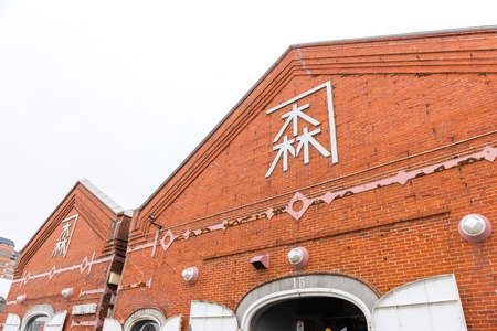 HOKKAIDO, JAPAN - JULY 19, 2015: The Kanemori Red Brick Warehouse in Hakodate port. The Kanemori Red Brick Warehouse is the first commercial warehouse in Hakodate, Hokkaido, Japan.