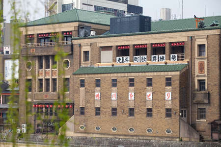 Kitakyushu, Japan - May 27, 2015: Moji customs and sea in Mojiko retro town
