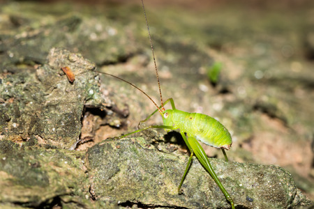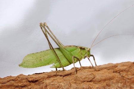Macro photo of tailed bush cricket Barbitistes constrictus