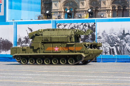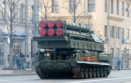 April 30, 2021 Moscow, Russia. Russian military air defense system Buk-M3 on Tverskaya Street in Moscow.