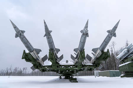 ground-to-air missiles on snow in winter. air defense. defensive system