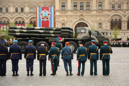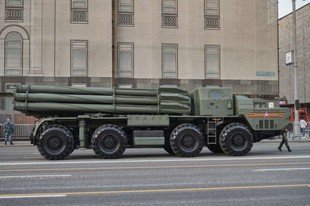 MOSCOW - MAY 6: Smerch RSZO - heavy multiple rockets launcher participate in rehearsal in honor of Great Patriotic War victory on Red Square on May 6, 2010 in Moscow, Russia