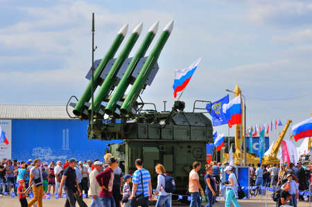 MOSCOW, RUSSIA - AUG 2015: Buk-M2 SA-17 Grizzly presented at the 12th MAKS-2015 International Aviation and Space Show on August 28, 2015 in Moscow, Russia