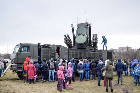 Krasnodar, Russia - February 23, 2017: Russian self-propelled anti-aircraft missile and gun system (ZRPK) onshore and offshore