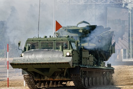 Tyumen, Russia - June 23, 2017: Army Games. Engineering Formula contest. Highest military and engineering school ground. MDK crews start driving