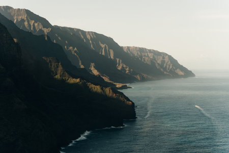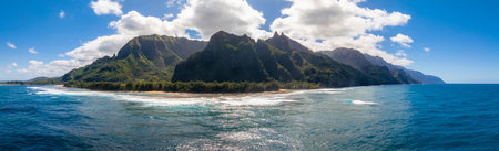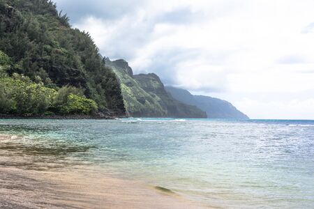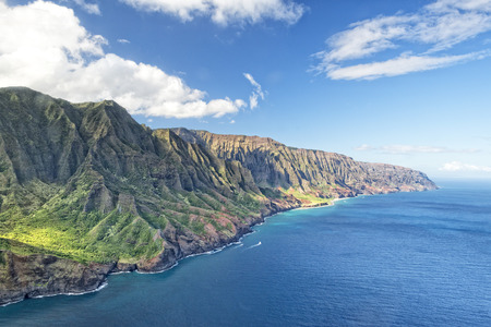 A beautiful view of spectacular Na Pali coast cliffs on Kauai island, Hawaii during daylight