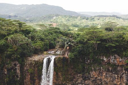 the waterfall of Chamarel Mauritius. water falling from the mountain.