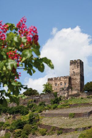 Castle Gutenfels in Romantic Rhine valley is a winemaking area in a beautiful summer day, Germany