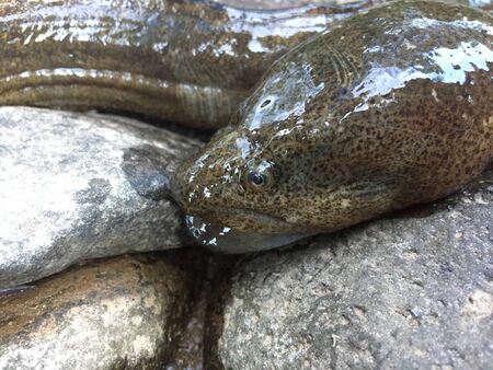 Eel like fish caught in a tropical river in the amazon rainforest