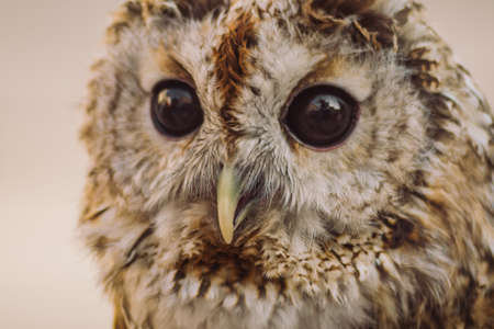Wild owl, detail from a wild bird in captivity, animal with feathers and beak