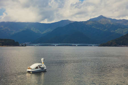 Fujikawaguchiko, Japan - November 27, 2018: The Lake Kawaguchiko Sightseeing Boat, a 20 minutes boat cruise to tour around the Lake Kawaguchi