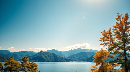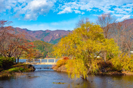 Beautiful landscape around lake kawaguchiko in autumn season Yamanashi Japan