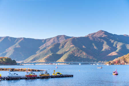 YAMANASHI, JAPAN - NOVEMBER 14, 2018: Day scene of Kawaguchi lake at Kawaguchiko, Yamanashi, Japan