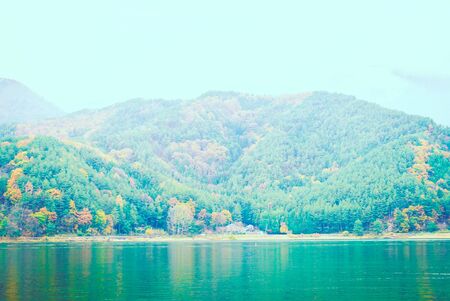 View of kawakuchiko lake, Japan. (Vintage filter effect used)
