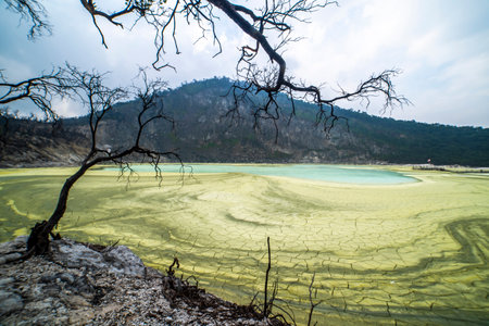 Kawah Putih Crater lake in Ciwidey West Java, Bandung Indonesia