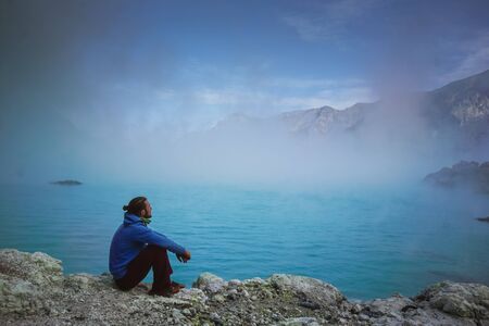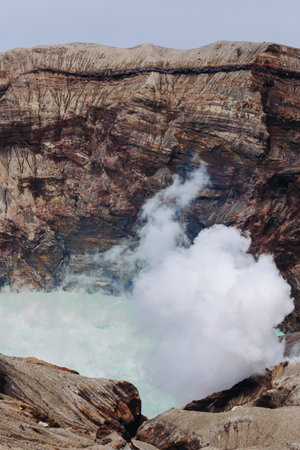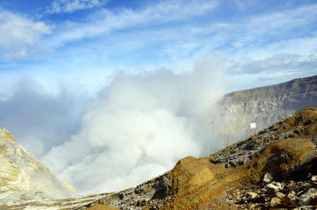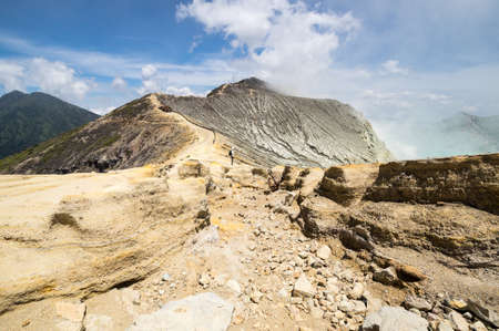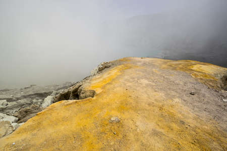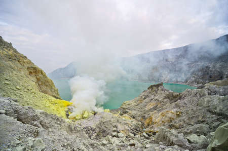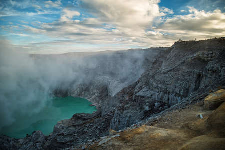 View from Ijen Crater, Sulfur fume at Kawah Ijen, Vocalno in Indenesia