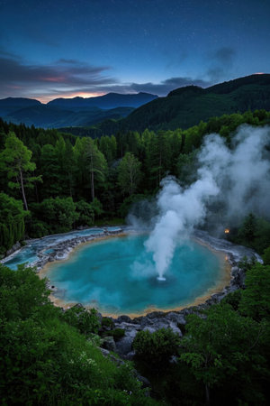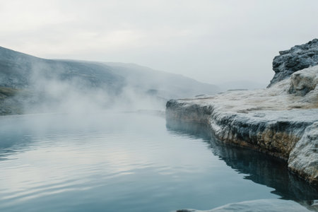 Experience a stunning natural landscape featuring steaming hot springs nestled among majestic mountains. A perfect escape into tranquility and beauty.