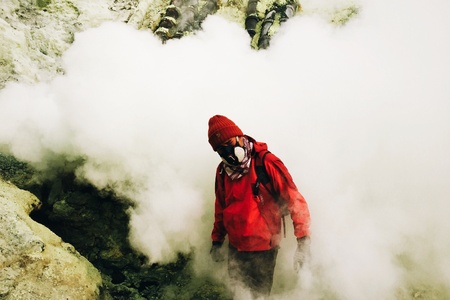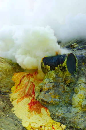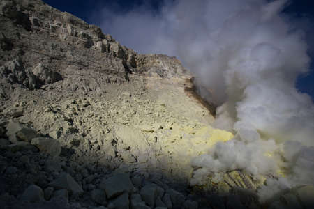 Sulfur fumes from the crater of Kawah Ijen Volcano, Indonesia