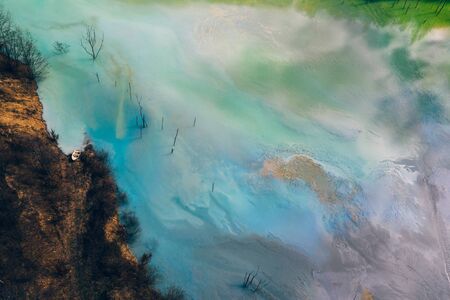 Drone view of contaminated, toxic water stream in Geamana, Romania
